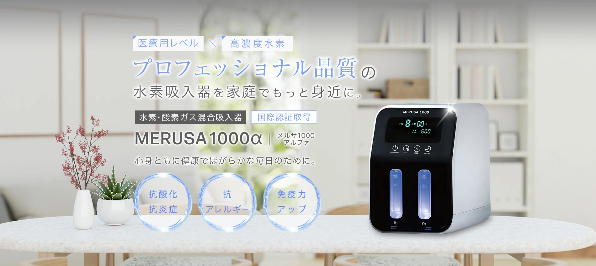 メルサ1000は、医療・業務用水準の機能を備えたプロフェッショナル品質の水素吸入器です。